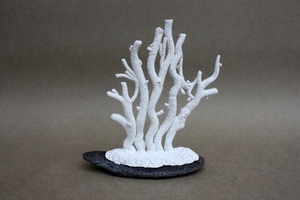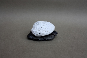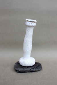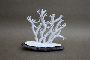 2020Techniek: Steengoed met porselein-structuur-huid gestookt op 1220 graden C. Gemonteerd op juthout.